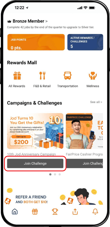 Step 2. Select The Campaign that you want to join by clicking the banner or “Join Challenge” button below the Campaigns & Challenges title