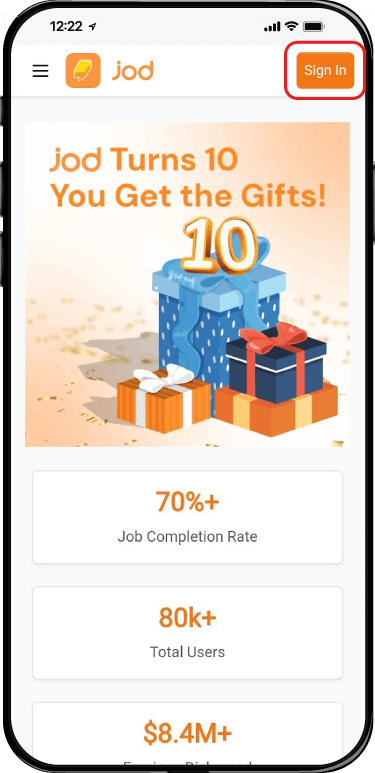 Back to GuidesStep 1. Go to Gig Partners Webpage and Click "Sign In" button on the Top Right